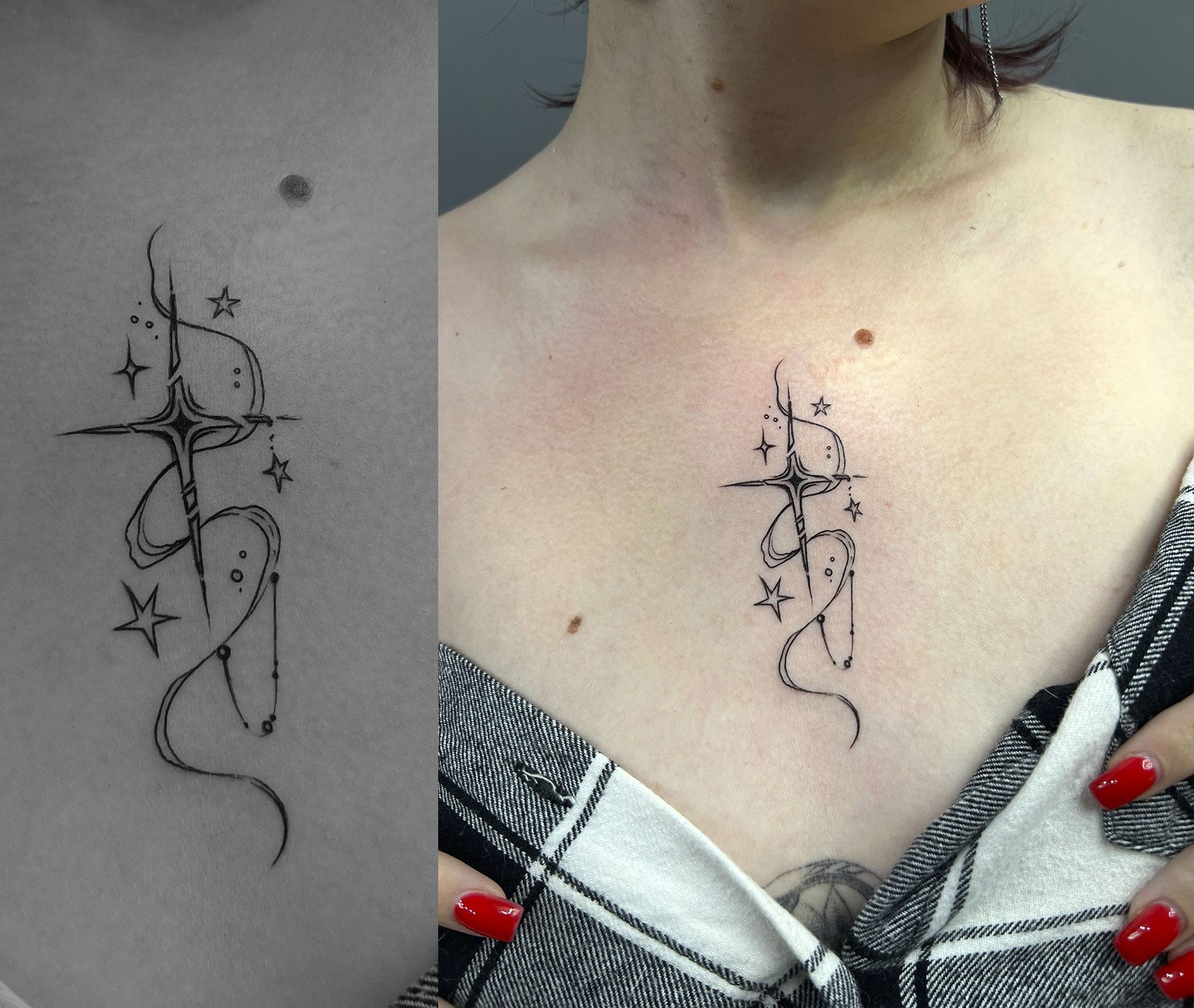 Она не из тех, кто быстро набивает. Для неё важны нюансы: как ляжет контур, где будет смотреться лучше, что клиент почувствует в момент и после. Таня — про душевный комфорт, бережность и настоящее внимание.