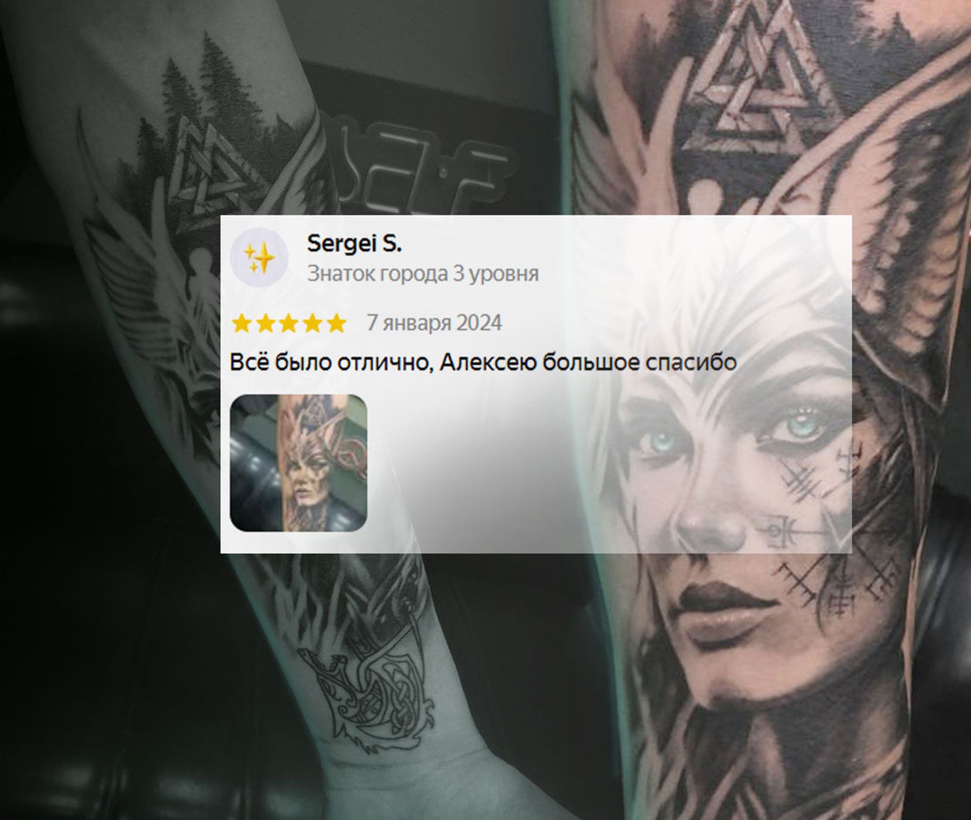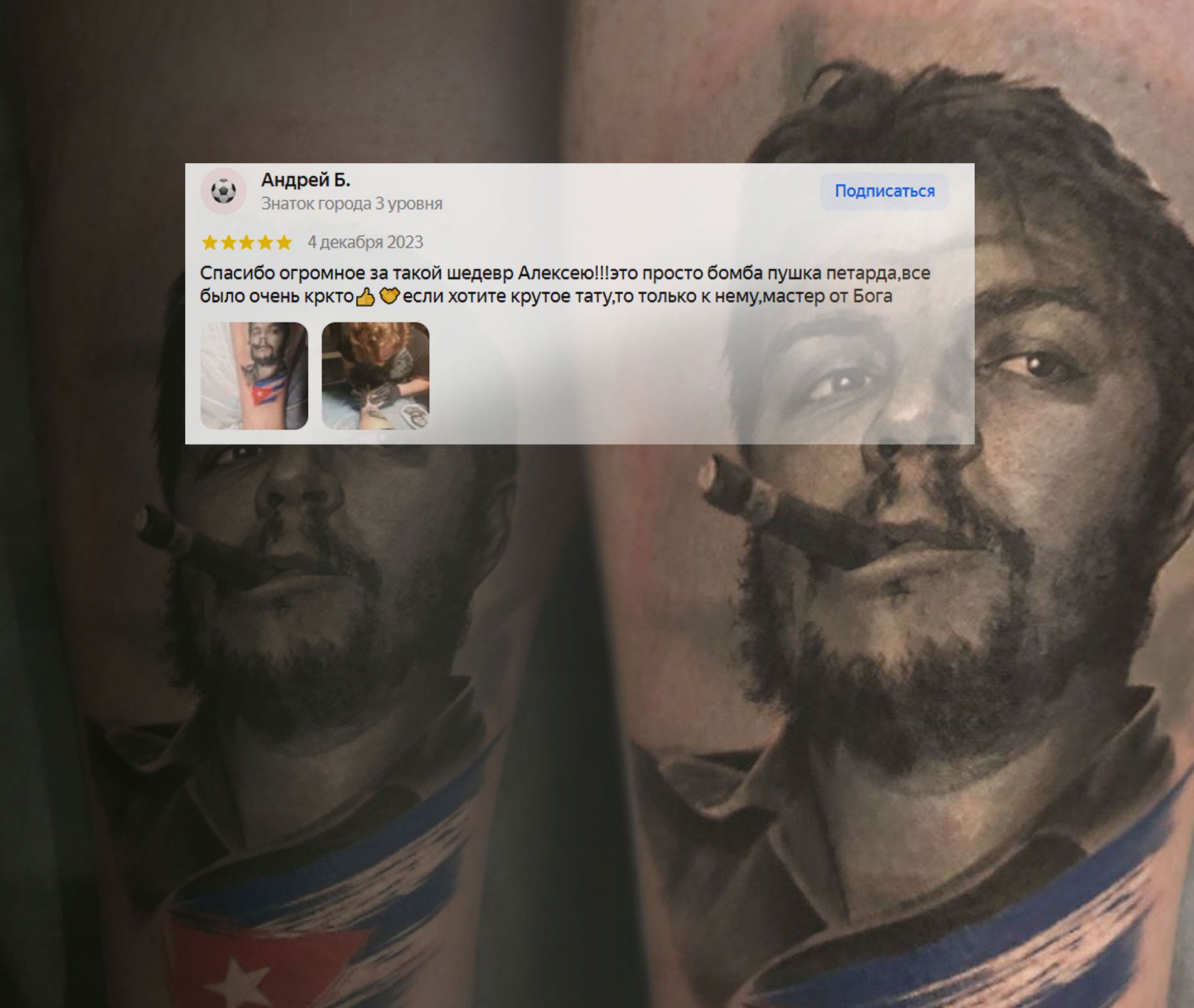С Лёшей легко и кайфово — сеанс проходит под классный вайб, с атмосферой, где тату превращается в особый ритуал. Чувствуешь себя в надёжных руках и в компании друга.
