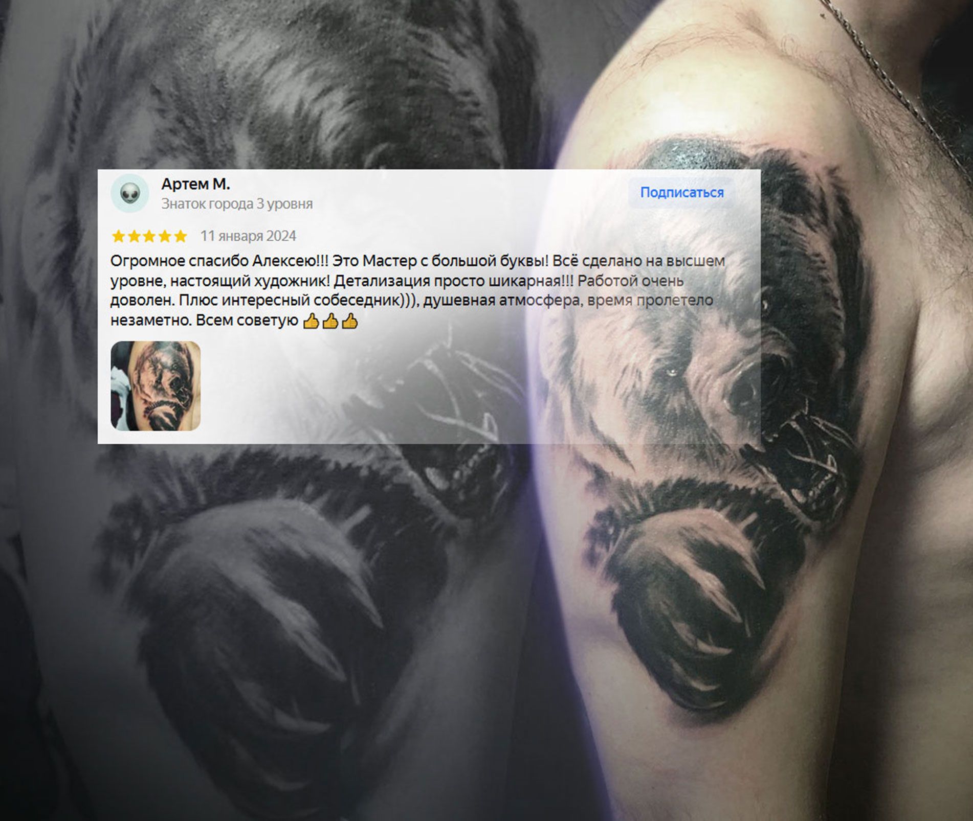 Лёша — мастер с огромным опытом и бешеной творческой энергией. Реализм, перекрытия любой сложности, атмосфера на сеансе и ВАУ-результат, который радует годами.